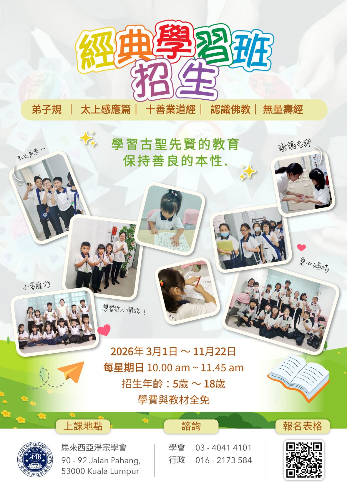 備註 : 凡報名經典學習班的學生,家長務必參與家長班,一同學習。