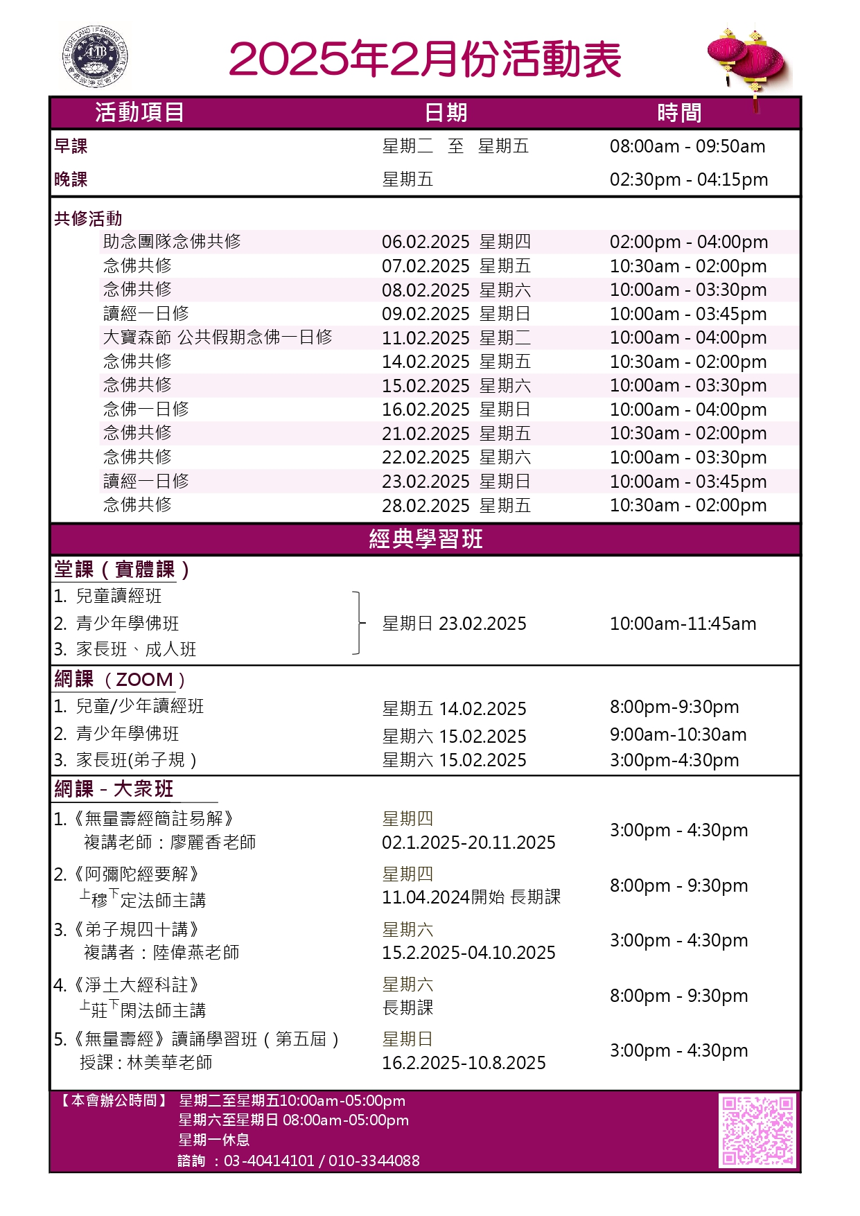 2025年2月份活動表